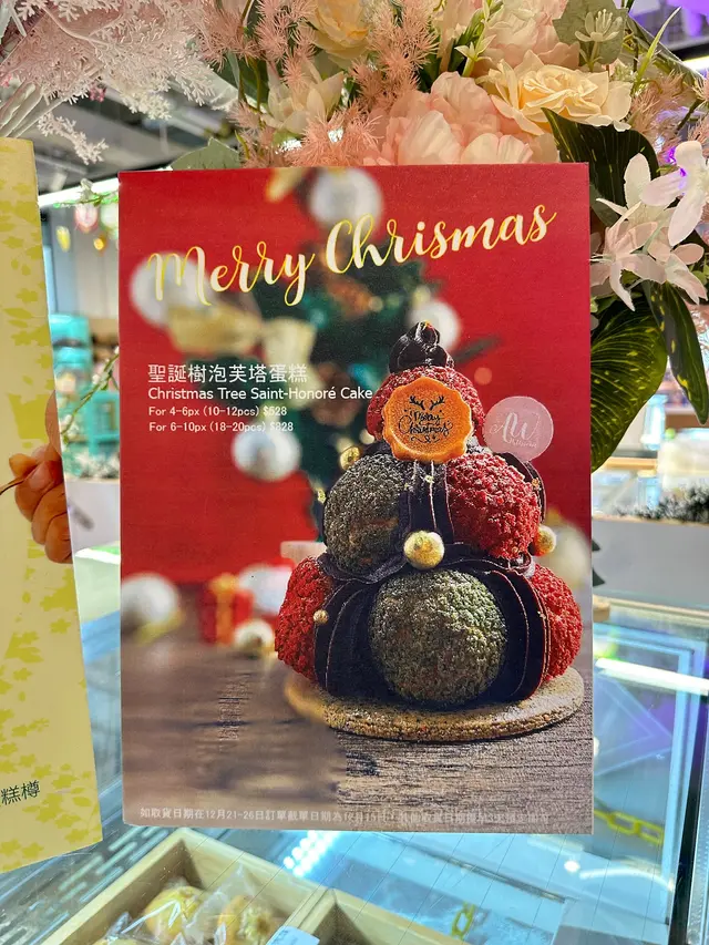 由10-12粒小泡芙組成靚靚聖誕樹🎄,分別有2種口味,紅桑子芝士餡和比利時黑朱古力手工吉士,以伯爵茶曲奇作為餅底,可以一粒粒拆來食,好玩又方便