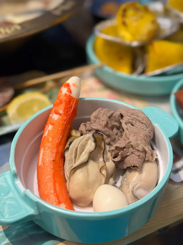 有新鮮蔬菜、美國蠔、海蔘、花膠、脆鯇魚片、帆立貝、丸類、水魷魚、魚肚、雞子、燕餃、炸魚皮、即食麵等,款式豐富。