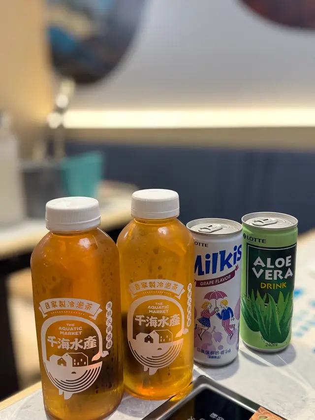 飲品種類繁多,除咗有一般汽水、果汁、茶嘅飲品之外,仲有自家製冷泡茶、楊枝甘露、珍珠奶茶等,另外仲設有清酒及梅酒區。