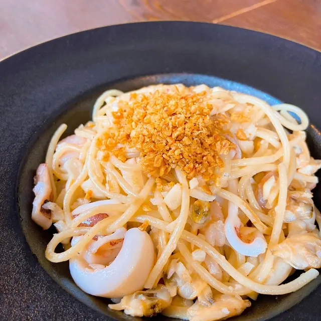 上枱既時候熱辣辣,配料有青口同蜆肉,最欣賞既係面頭加左啲蒜粒香口惹味