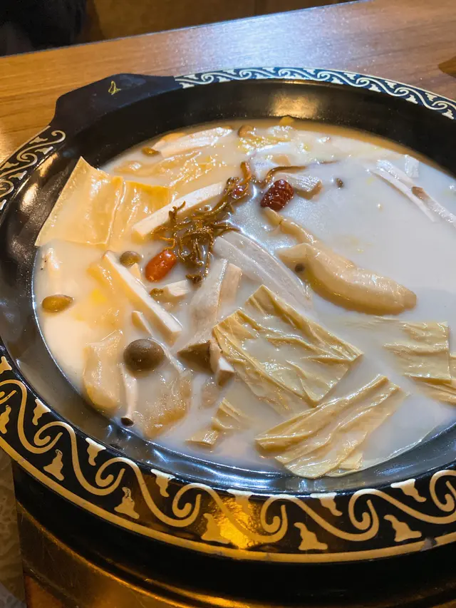 今次嗌既湯底好養生,入面有花膠、菇、紅棗、蟲草、腐竹、菜,花膠食落黏口,膠質豐富。