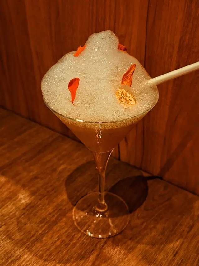 🍸Golden Bloom 威士忌、白馬天尼與七種菊花茶融合,加入蜜糖蘋果汁調味。一啖飲落去有蜜糖嘅溫潤同蘋果嘅酸甜,後段仲有菊花清香,非常有層次感。