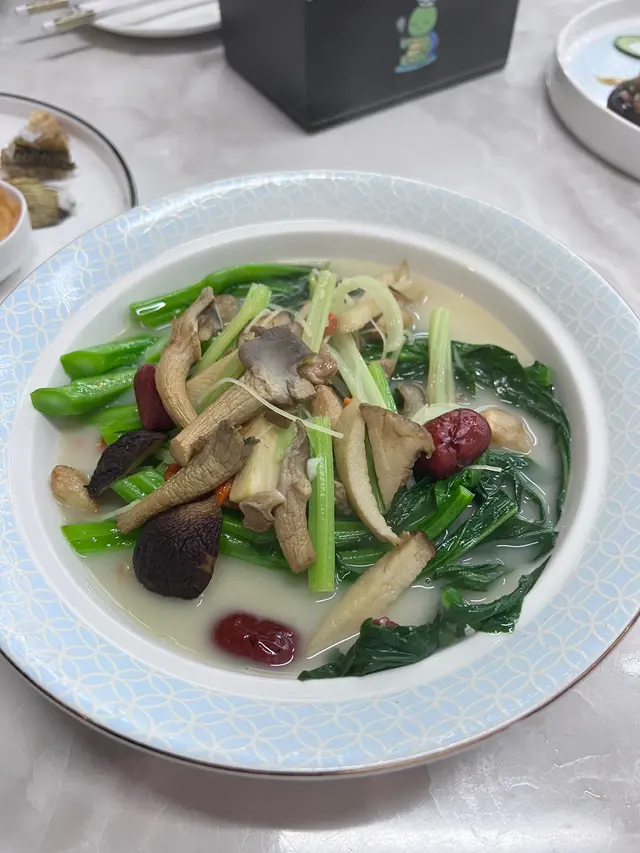 🌿 **杞子鮮菌雞湯浸時蔬** 🌿:清爽的雞湯配上時蔬,健康美味兩不誤!🥗