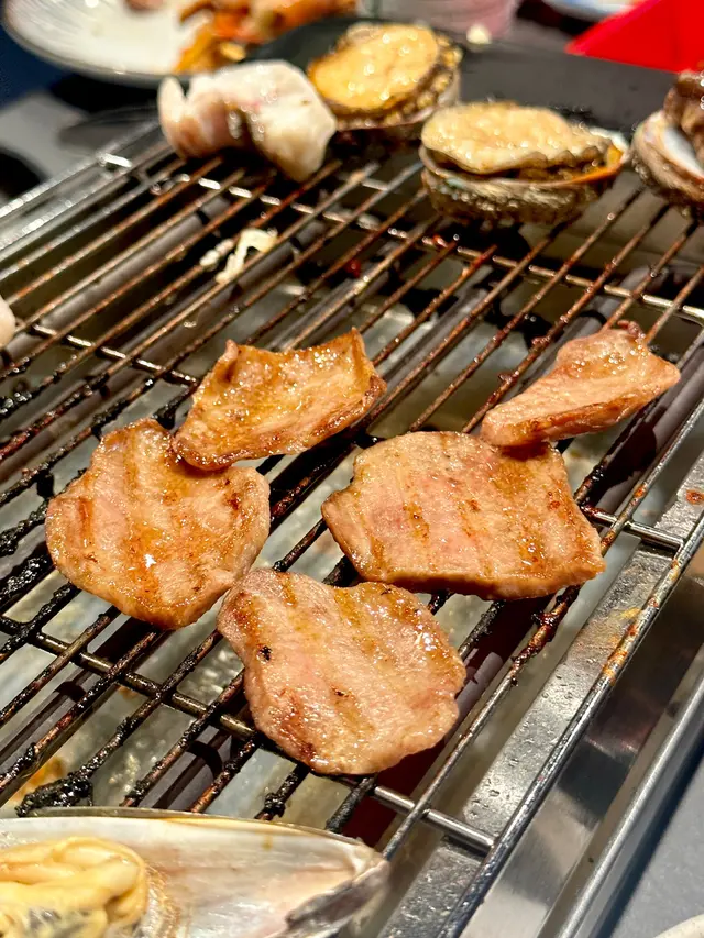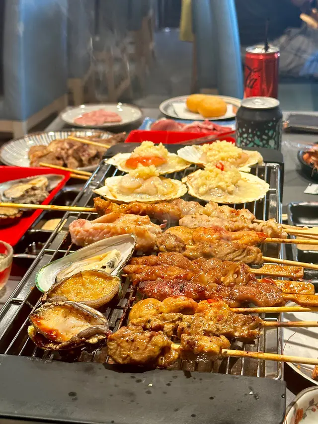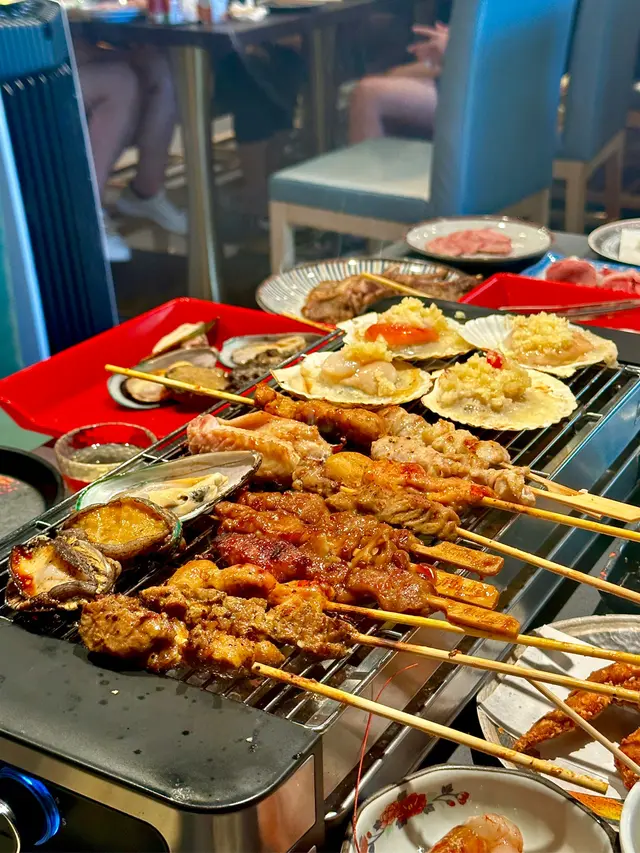款式超𝐨𝐩𝐭𝐢𝐨𝐧超級多,大滿足🈵️:羊肉、牛肉、沙爹雞肉、照燒雞肉串、雞軟骨、雞中翼、雞腎🐔大推肥美薄切的牛舌片以及𝐌𝟔澳洲和牛肩肉,肉質鮮美嫩滑,大理石紋理入口融化🥩