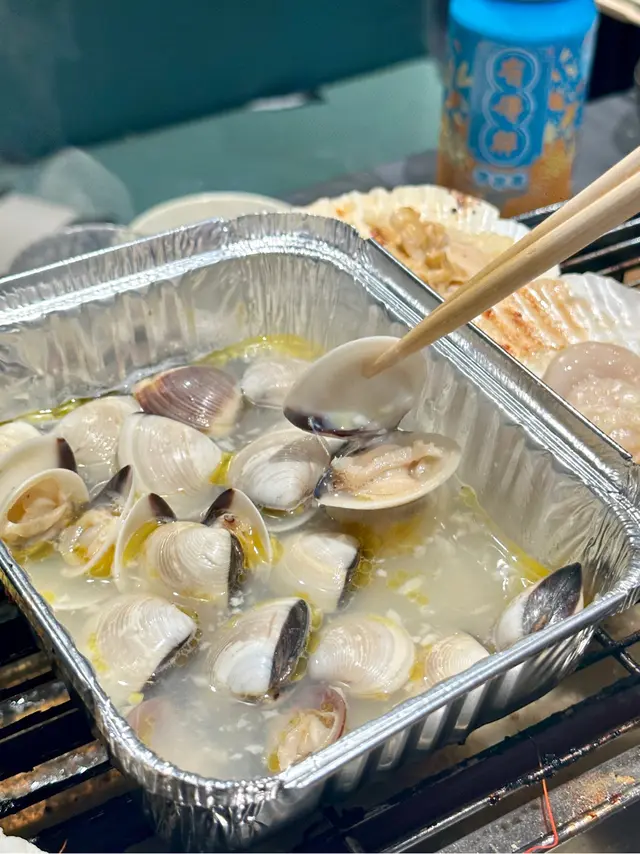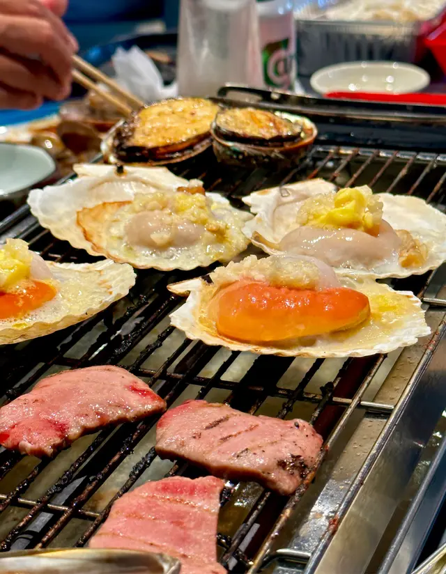 最驚訝居然有超大的一隻扇貝!混合牛油和蒜頭秒𝐠𝐞𝐭蒜蓉牛油磯燒扇貝!貝柱位置新鮮鮮甜多汁~還有新鮮鮑魚、肥美雪白的鱔🐟
