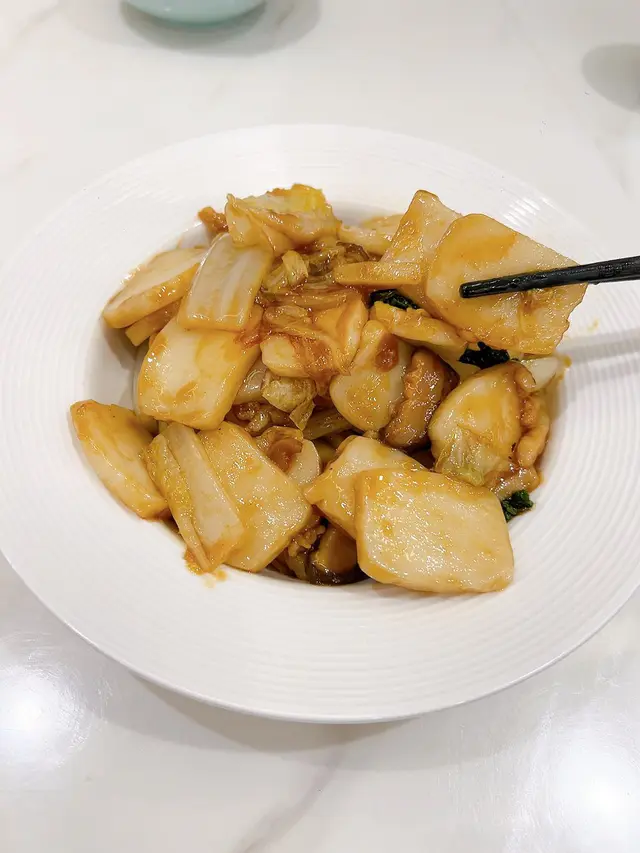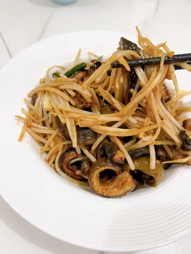 若論可提升之處,則在「擺盤」。盛盤略顯樸實,多為傳統圓碟平鋪。醬色深邃的鱔糊與銀白豆芽雖成對比,但若能稍加點綴,如綴以細絲蔥花、嫩薑絲,或將鱔糊稍作堆疊,中央輕放一撮銀芽,視覺上定能更富立體感與精緻度,進一步呼應其不凡滋味。