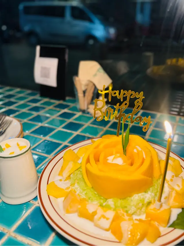 生日儀式感滿分🎂 糯米飯暖笠笠,用芒果鋪到滿晒🤩!加埋蠟燭同生日牌,慶祝生日打卡一流~