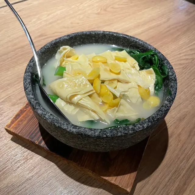 鮮腐竹食落有清香嘅豆香味,而且有好多舊可以食,菜心全部都好翠綠咬落好爽口,湯底本身都充斥住菜同豆香,食完菜仲忍唔住飲左幾啖個湯底。