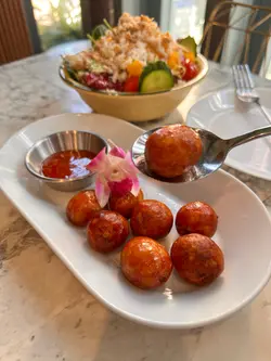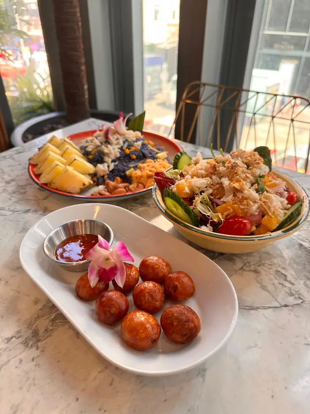 酸腸微酸微辣味道很特別,炸得香口,吃起來像香腸,蘸點泰式酸甜醬汁,酸辣口味十分開胃又惹味。