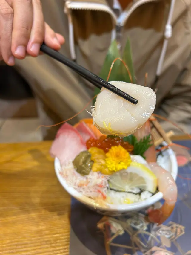- 🍣 北海道丼:三文魚厚切脂潤、牡丹蝦甜糯、蟹膏加魚籽鋪滿碗,鮮味爆炸,每一口都想尖叫。