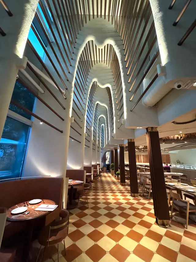 今次去咗位於如心廣場嘅PARKSIDE@NINA。餐廳以木化石為生題,採用咗歐陸式教堂設計,餐廳樓底好高,空間感十足,有圓拱型天花設計,開揚走廊空間同埋木座位,而巨型落地玻璃窗,引入自然光線,尤如進入咗入藝術館咁,到處都瀰漫住浪漫氛圍,非常適合打卡。