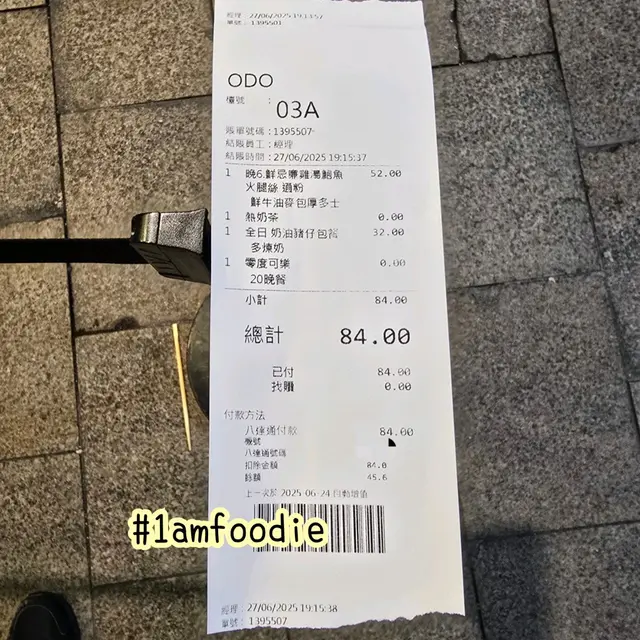 餐飲我飲「熱奶茶」,奶落得比較重,所以係順滑嘅。本身奶油豬有得跟餐加錢轉,但係而家冇。咁我就咁直接叫 $32 嘅「全日奶油豬仔包餐」就可以食到,仲要叫佢多煉奶。食落都 okay 嘅,正正常常。餐飲要「零度可樂」直接拎走,埋單就 $84 走人。。。