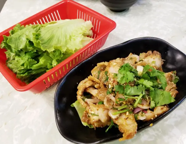 冇咩謂口,就求其散叫两味,【泰式豬頸肉生菜包】,【蝦醬炒飯】。