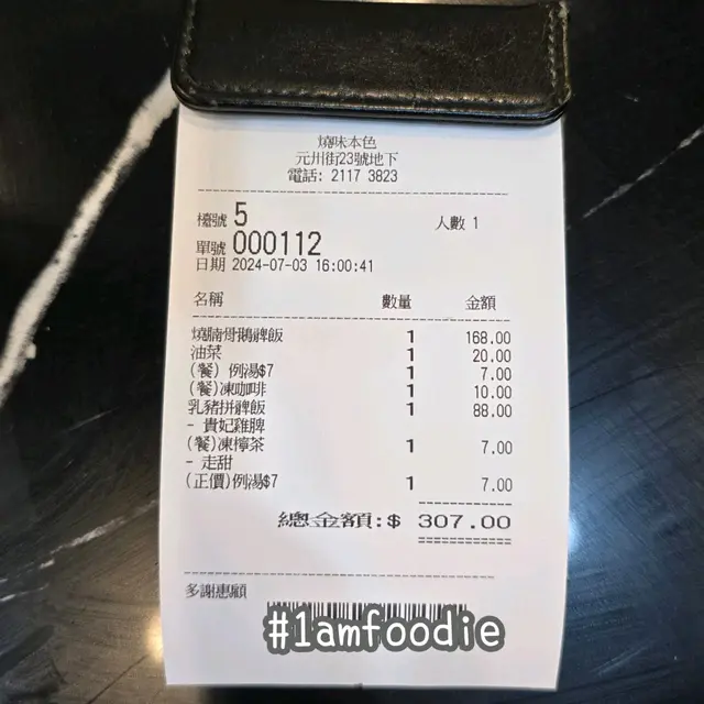 我就試 $88 嘅「乳豬拼髀飯」,轉瀨粉,要嘅髀係貴妃雞髀,兩款燒味都唔錯,隻雞都幾香雞味。用 $7 要碗「例湯」最後都係進貢畀羶鹵獅,佢作為例湯愛好者都覺得呢碗幾好。我加 $7 試埋「凍檸茶走甜」,都係具有茶餐廳水準。埋單 $307,非常盡興。。。