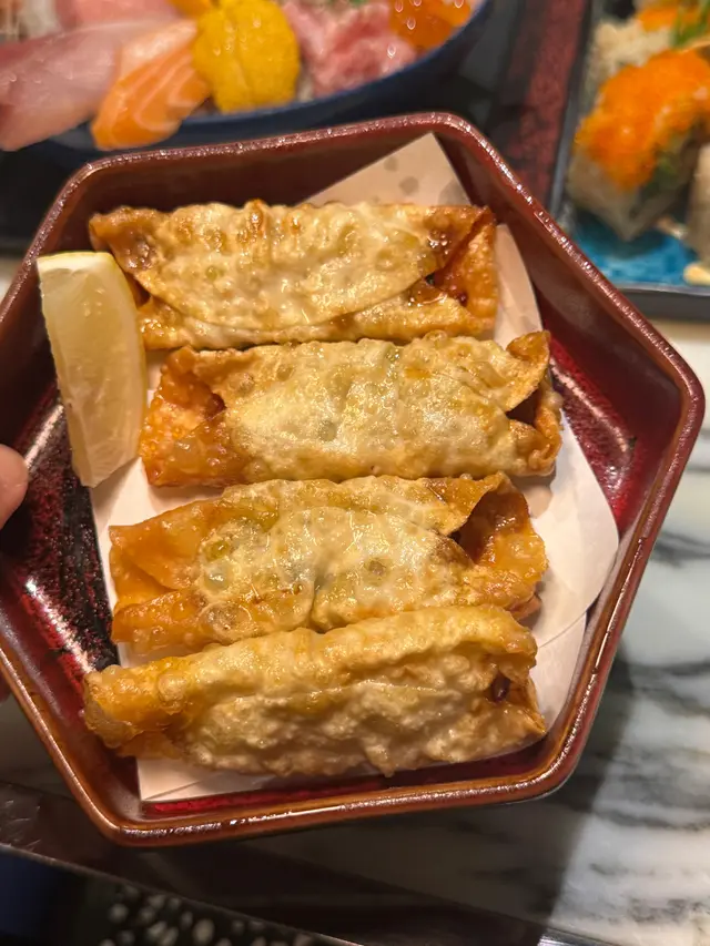 - 餃子煎香,入面粒粒軟骨,好脆口