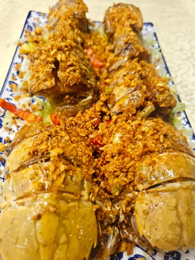一上枱就已經聞到超香蒜辣味,招牌避風塘炒辣蟹真係冇得輸!蟹肉鮮甜爆膏🦀,加上炸到金黃嘅蒜粒同辣椒,香辣惹味到停唔到口,仲要係啖啖肉,食到lam lam脷~