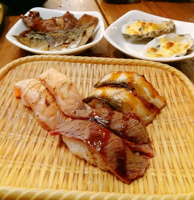 火炙三文魚、蒲燒鰻魚、霜燒牛肉