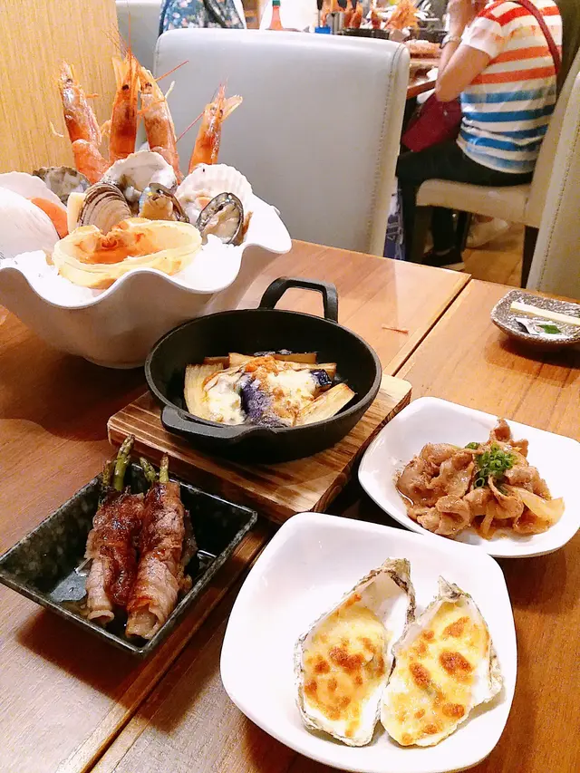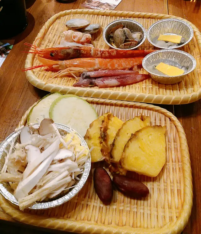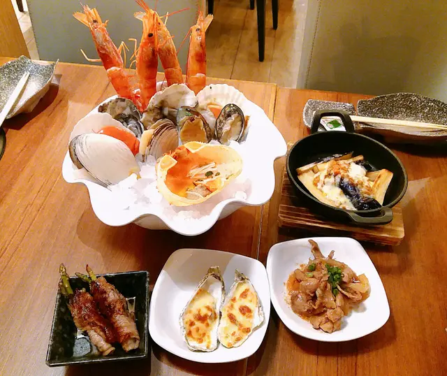在我們點餐時,店員已經依據人數,預先送上豐富的磯燒海鮮拼盤。