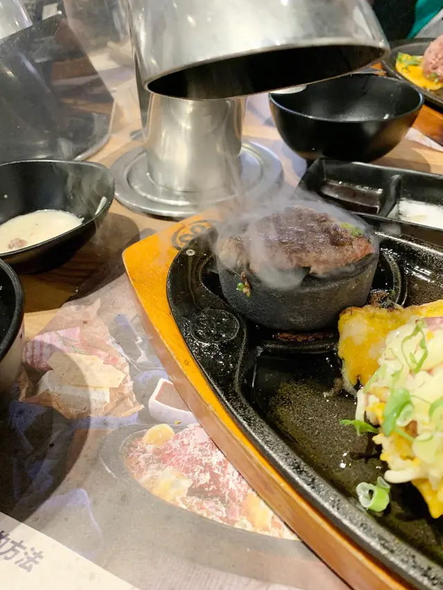 落完單,侍應好快比左個餐我地,跟據桌墊指示,把熱石放置煙囪位下方,將適量漢堡扒鋪平熱石上,幾分鐘便可食用。