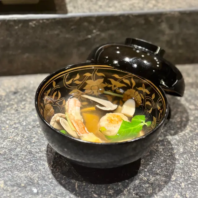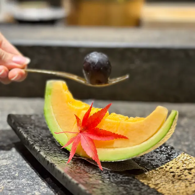 蟹真丈清湯溫暖收尾,真丈綿軟藏著蟹肉絲。蜜瓜多汁清甜,為整餐畫下圓滿句點。