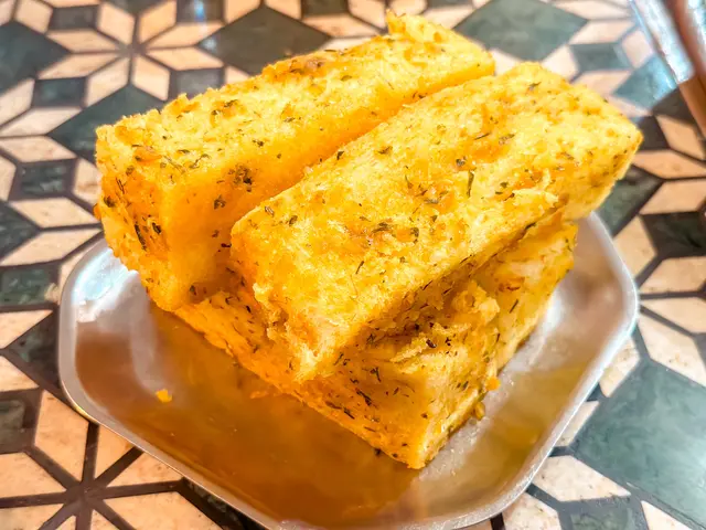 形狀像金磚因為將蒜蓉包拎去炸加上六面都搽上蒜蓉,搭配咖喱汁更是絕配,味道超級好。