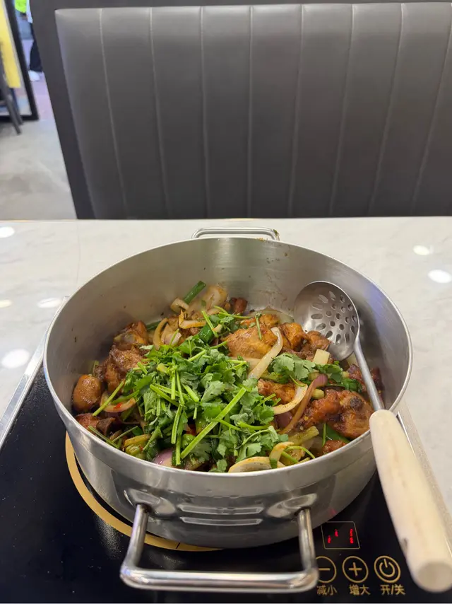 雞煲可以選擇唔同辣度,雞件份量好多,而且可以任食任添,餐廳用咗洋蔥、芫荽、雞肉一齊炒,雞件炒得好香好掛汁惹味,但偏多碎骨,食嗰陣要小心🐓