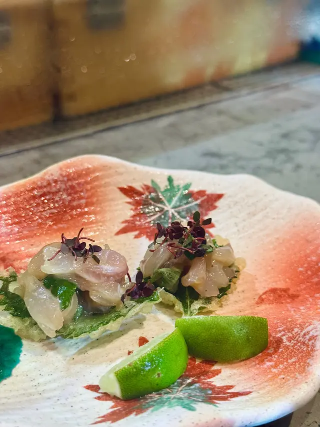 第一道菜已經開始俘虜我內心,平時紫蘇葉呢啲咁重(草)味嘅野,點解今次可以咁好食!我記得佢中間仲有少少類似酸蘿蔔嘅碎碎,簡直係genius。有創意~✨✨✨