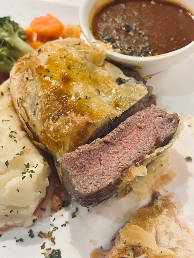 👉 酥皮脆包粉嫩牛柳 肉汁爆出