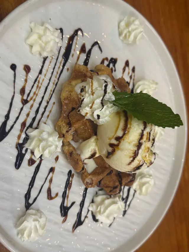 壓軸的「雪糕窩夫」現點現製,外脆內軟的窩夫配上冰涼雪糕,冷熱交融的滋味為餐畫下完美句點。
