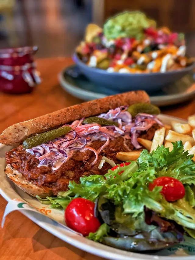 呢個「Pork Sandwich」應該就係網上好多人讚嘅「招牌手撕燒烤豬肉三文治」。果然名不虛傳,一啲都冇令人失望!三文治用咗帶韌性嘅酸種麵包,外層烘到微脆,入面夾滿用BBQ醬醃過嘅手撕豬肉,份量十足。 手撕豬肉非常入味,肉質軟腍,配埋爽口嘅椰菜沙律絲,成個口感層次即刻豐富晒。 旁邊仲跟埋炸到金黃香脆嘅薯條,成個餐飽肚感十足,絕對係「邪惡」但又令人滿足嘅選擇。
