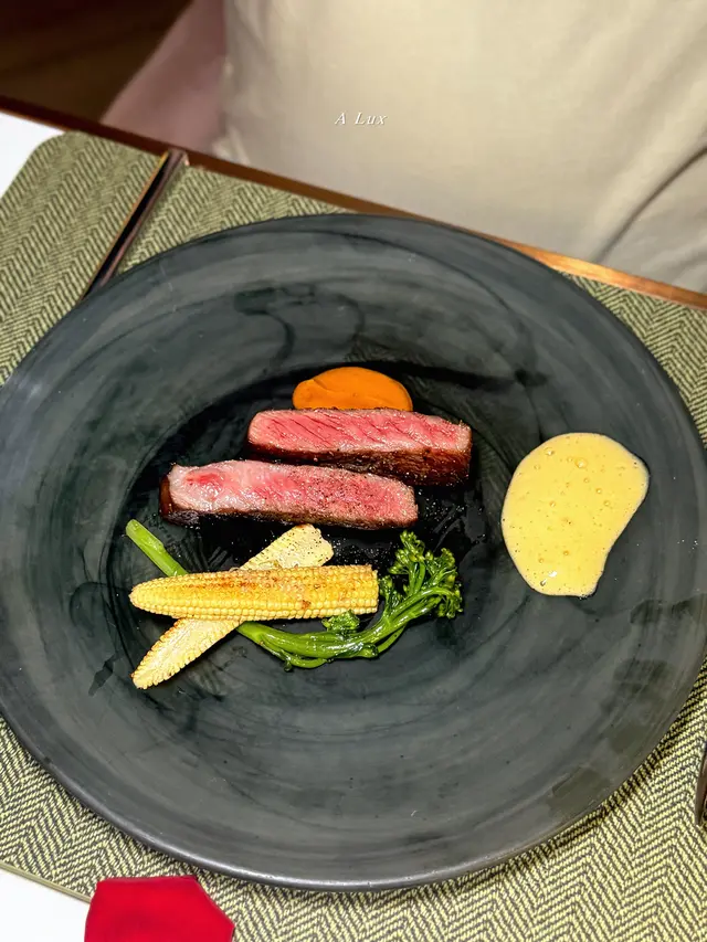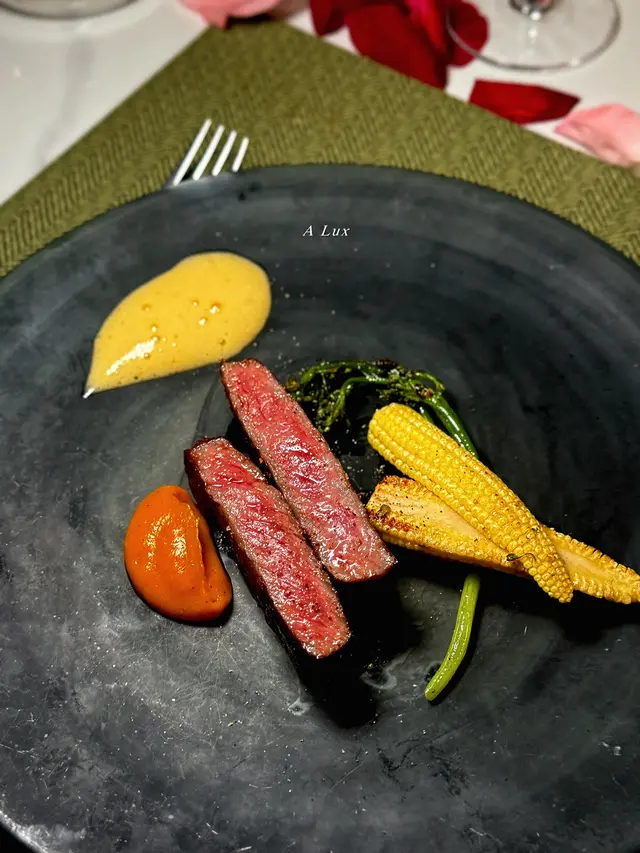粉嫩大理石紋理的𝐖𝐚𝐠𝐲𝐮肉質鮮嫩潤滑,搭配蛋黃和醬油+氮氣打成的壽喜燒泡沫醬,帶來驚喜豐富的味覺享受。