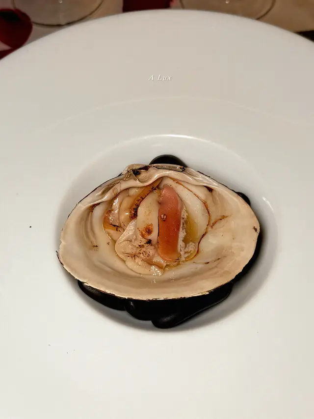 北寄貝用牛油烤至半熟,再灌注熱騰騰的馬賽鮮魚湯。每口爽脆的北寄貝鮮甜與魚湯的層次分明,味道濃厚而豐盈。