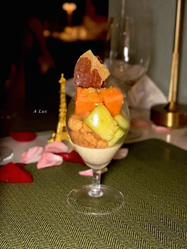 𝐅𝐮𝐬𝐢𝐨𝐧創意完美在芭菲裡面體現!鹹香風乾𝐩𝐚𝐫𝐦𝐚火腿與赤肉蜜瓜雪糕與並陳,茉莉花奶凍配半鹹半甜𝐜𝐫𝐮𝐦𝐛𝐥𝐞,賦予味蕾甜鹹交融的絕妙平衡