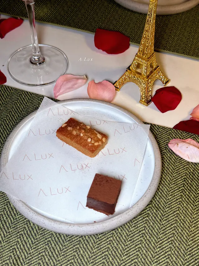以兩顆自家製小甜點結束全餐,松露朱古力絲滑細膩,牛油小蛋糕綿密,為晚宴畫下完美句點。
