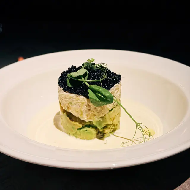 - **蟹肉牛油果醬塔**:鮮甜蟹肉配滑順牛油果,黑魚子點綴增添鹹香層次;