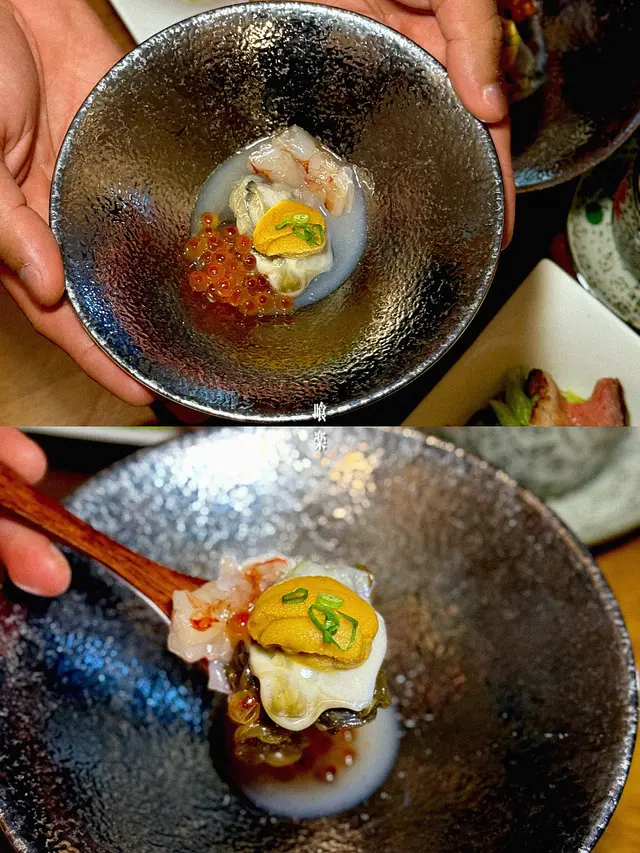 ❷ 前菜𝟐~兵庫縣生蠔🦪+三文魚籽+水雲+海膽~用上酸甜醬汁非常開胃