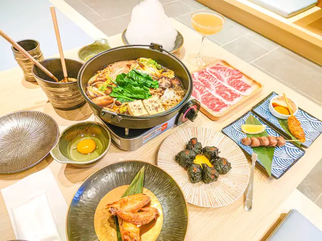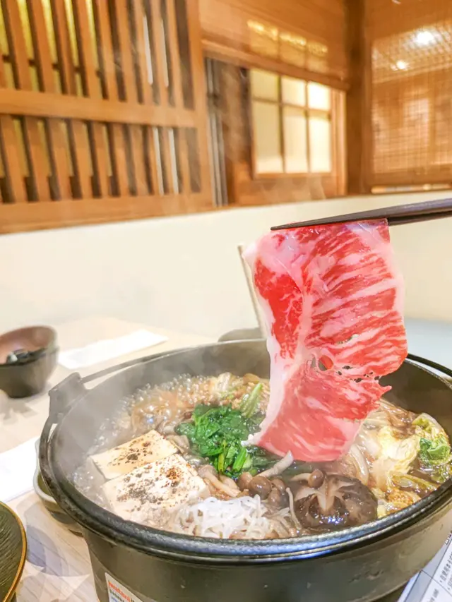 用棉花糖為壽喜燒加入甜味, 打卡一流! 油花均勻嘅A4宮崎和牛, 輕灼幾下點上日本蛋漿, 滑溜又濃郁~鍋物有豆腐,蟹味菇冬菇金菇,粉絲,京蔥洋蔥日本蔬菜等等,嗦曬壽喜燒湯汁,超juciy~