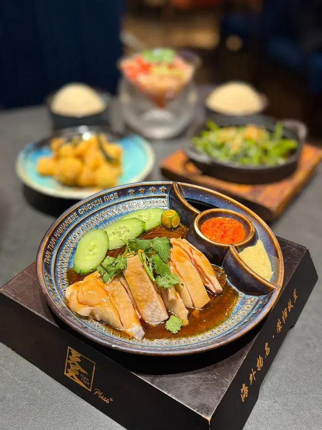 招牌海南雞保留咗新加坡本店傳統製法,選用咗海南文昌鎮正宗文昌雞同埋白羽雞,雞肉嫩滑可口,雞皮薄爽滑,皮下有層啫喱,口感細膩,入口即溶,雞肉肥瘦均勻,肉味濃郁,而且係無骨,食落好方便,配上三種醬汁,味道多種層次,包括有香醇可口嘅黑豉油、香氣十足嘅蒜蓉醬同埋味道酸辣嘅辣椒醬,將雞肉沾醬嚟食更加開胃惹味。