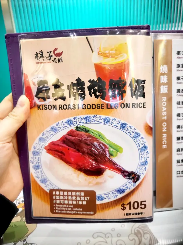 棋子的燒鵝是採用煙燻製作,配合獨門研發秘方醃製,所以燒鵝髀色澤金紅,入口啖啖肉,肉質鮮嫩多汁,最重要是皮薄豐腴,甘香不膩。