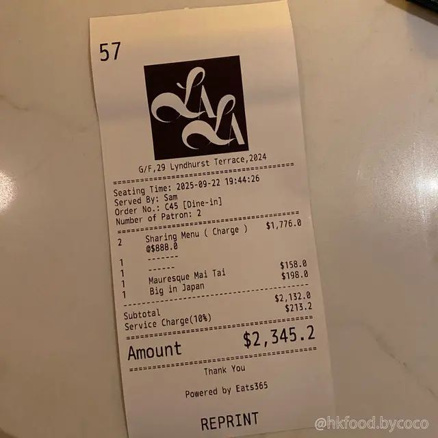 消費指數:💰💰💰💰(TTL $2345.2,人均消費$1172.6)