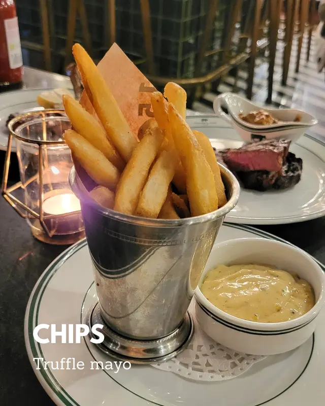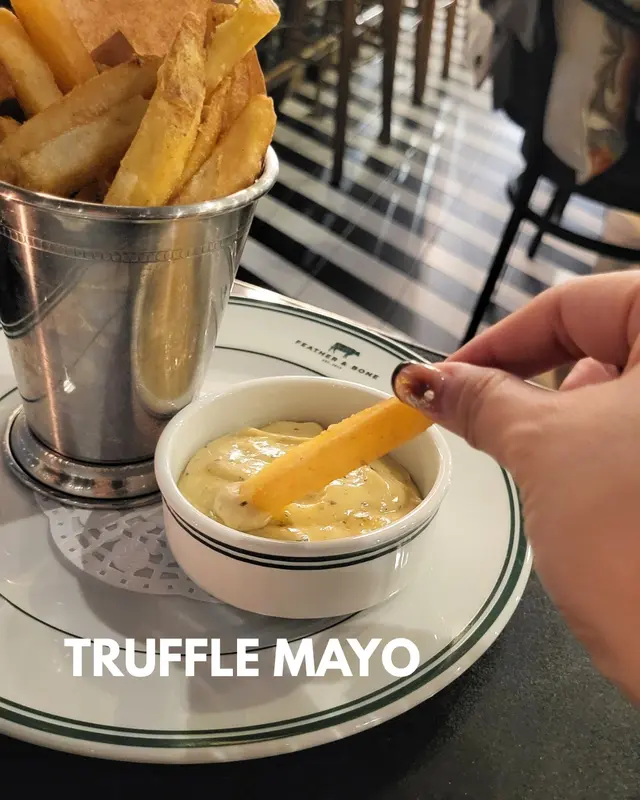 粗薯條炸到外脆內綿,重點係嗰碟mayo——松露香氣濃郁,薯條未食晒醬已見底