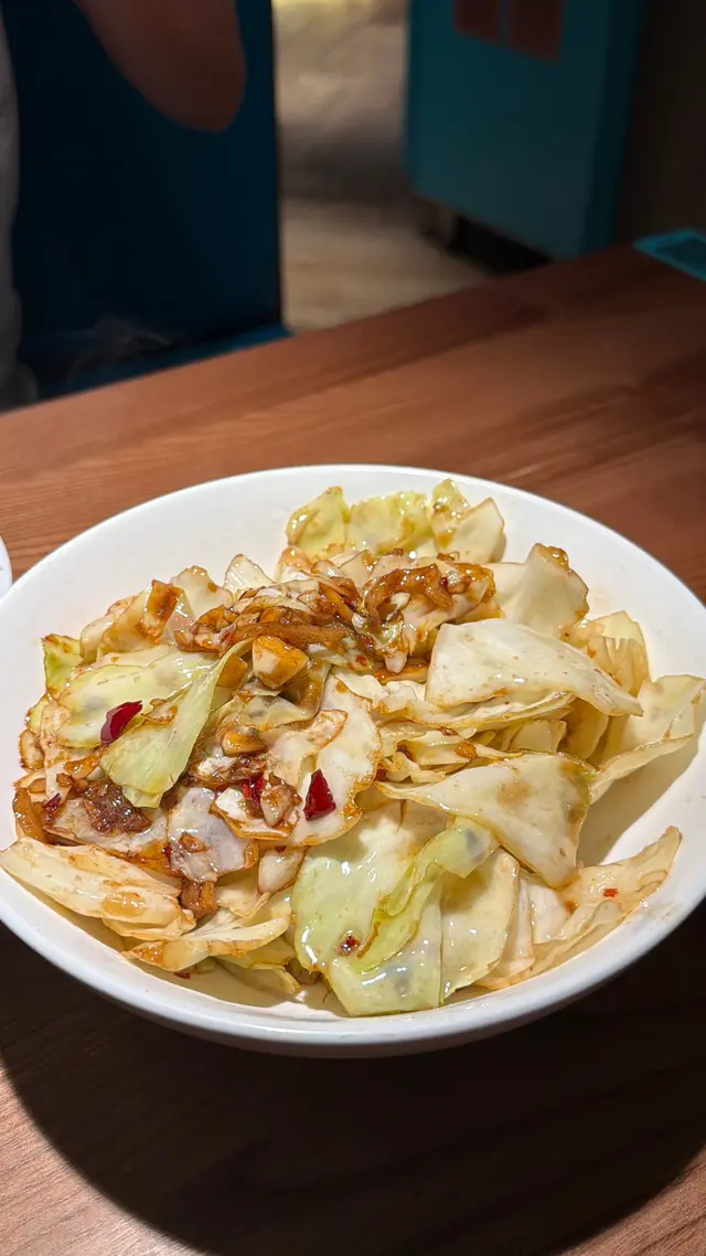 簡單炒菜食落亦有驚喜,蒜頭洋蔥絲五花腩肉香味撲鼻,辣椒與包心菜炒得夠鑊氣。