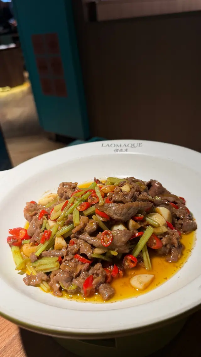 牛肉切成幼條與芹菜蒜頭快炒,黃牛肉特別香濃,調味讓牛肉少少甜,相當風味,湘菜味濃。