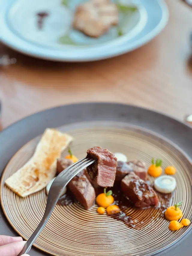 作為唯一一道非傳統韓國菜,烤澳洲和牛有進步空間…感覺有點乾韌呢,但伴碟的𝘤𝘢𝘳𝘳𝘰𝘵 𝘱𝘶𝘳𝘦́𝘦好鮮甜,不錯!