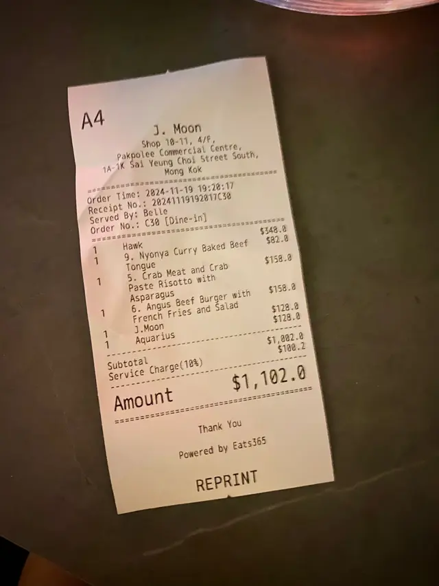 消費指數:💰💰💰(TTL $1102,人均消費$551)