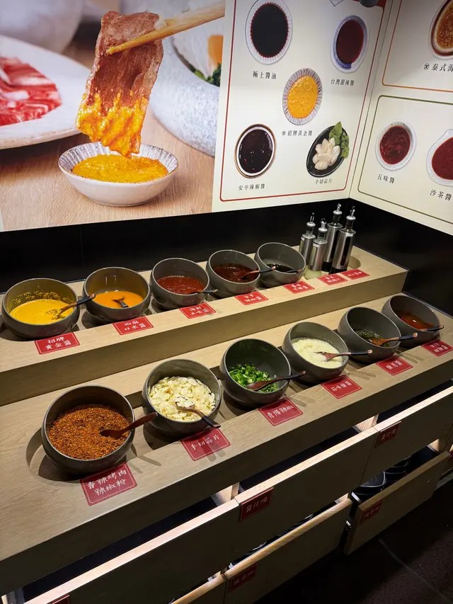 醬汁區係一大亮點,有多款特色醬汁任君選擇!個人特別推薦「招牌黃金醬」同「薑味可樂醬」,前者香濃惹味,後者甜中帶辣,好特別!另外「香水檸檬汁」清新解膩,配牛肉一流。仲有齊全嘅蒜片、蔥花等配料,可以自由發揮。