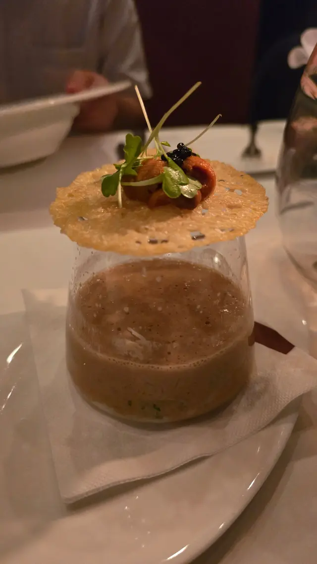 海螯蝦鮮甜彈牙,湯凍融化後滲出巴馬火腿鹹香,層次複雜得嚟好舒服