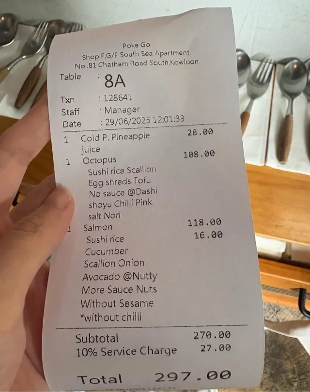 尖沙咀呢間Poke Bowl專門店,絕對係誠意之作。招牌八爪魚口感一流,份量驚人,配料落足心機絕不馬虎。加上 Fresh到震嘅冷壓菠蘿汁,成個組合健康、飽肚、味蕾大滿足。如果你係追求 「大份夾抵食」 同 「高質海鮮」 嘅Poke Bowl愛好者,呢間絕對值得專程去試!保證你捧住個肚,笑住離開!