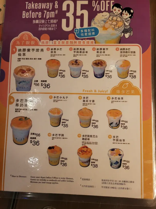 如果時間許可,730pm前到訪,好多糖水都是35%off 超抵食;又或者外賣,全日可享同樣優惠!
