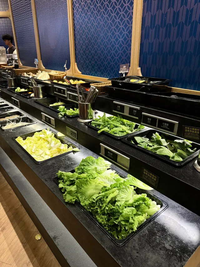 蔬菜區選擇豐富而且好新鮮。醬料台提供多種選擇,推薦調配:柚子醋+蔥花,清爽解膩;或是芝麻醬+少許麻椒油,濃郁開胃。